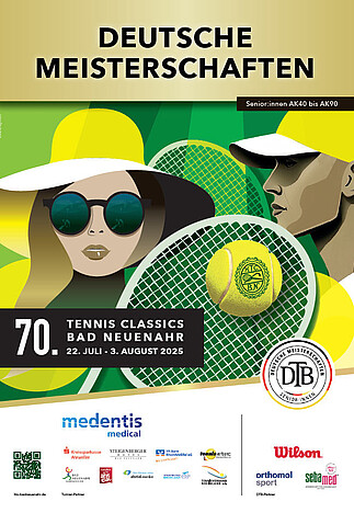 70. Nationale Deutsche Tennis-Meisterschaften der Senior:innen - Meldeschluss für die Einzel-Konkurrenzen AK 40/45 sowie AK 60/65 ist Sonntag, 20. Juli.