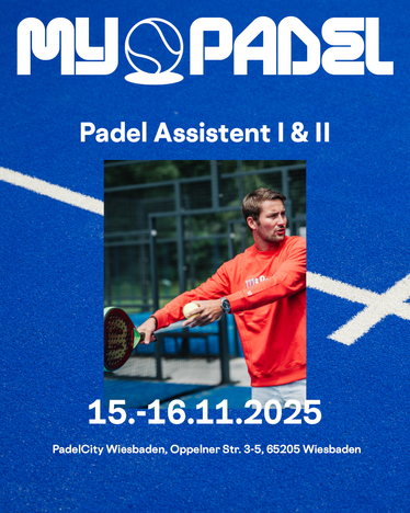 Angeboten wird der nächste Lehrgang in Wiesbaden am Samstag, 15.11.2025 (Padel Assistent I) und Sonntag, 16.11.2025 (Padel Assistent II).