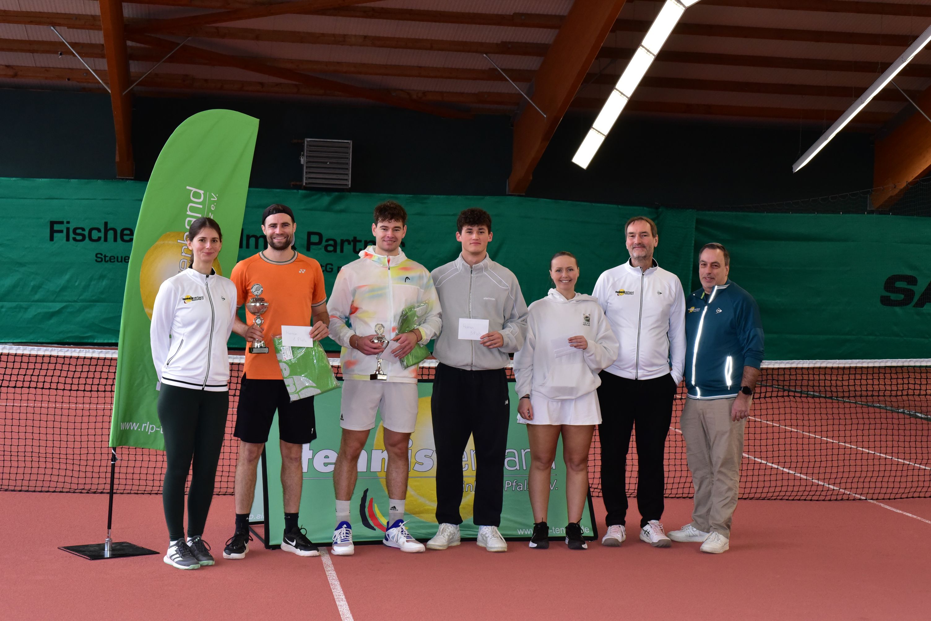 Bei den Herren konnte der ursprünglich auf Position 1 gesetzte Kaspar Mathes (TC Gensingen) wegen einer kurzfristig zugeteilten Startzusage bei einem ITF-Turnier nicht antreten und so kam ein Spieler der umfangreichen Nachrückerliste zum Zug. Im 16-er Feld konnte sich der ungesetzte Yannic Köhne mühelos ins Finale spielen. Dabei schaltete der deutsche Hochschulmeister von 2022 zunächst den auf Position 2 gesetzten Alexander Haage (BASF TC Ludwigshafen), dann Daniel Baumann (ebenfalls BASF TC Ludwigshafen) und schließlich Benjamin Weller (Ingelheimer Tennisclub) in jeweils zwei klaren Sätzen aus. Im Finale traf er auf den ebenfalls ungesetzten Marcel Schomburg (Ingelheimer Tennisclub). Dieser besiegte auf seinem Weg ins Finale Jonny Puglisi (BASF TC Ludwigshafen) und Vito Manola (TC Dannstadter Höhe) in zwei Sätzen. Im Halbfinale wurde ihm von Jannik Ripberger (TK Altrip) alles abverlangt und er konnte sich dort erst im Match-Tiebreak mit 10:7 durchsetzen. Im Finale dominierte dann Köhne, der das Turnier auch schon 2024 für sich entscheiden konnte, den Ingelheimer nicht nur durch seine kraftvollen Vorhandpeitschen. Auch durch gezielt eingesetzte Stopps, die sein Gegner manches Mal zwar noch erlaufen konnte, dann aber beim „Nachschuss“ passen musste, konnte Köhne zum 6:1, 6:2 Endergebnis punkten.