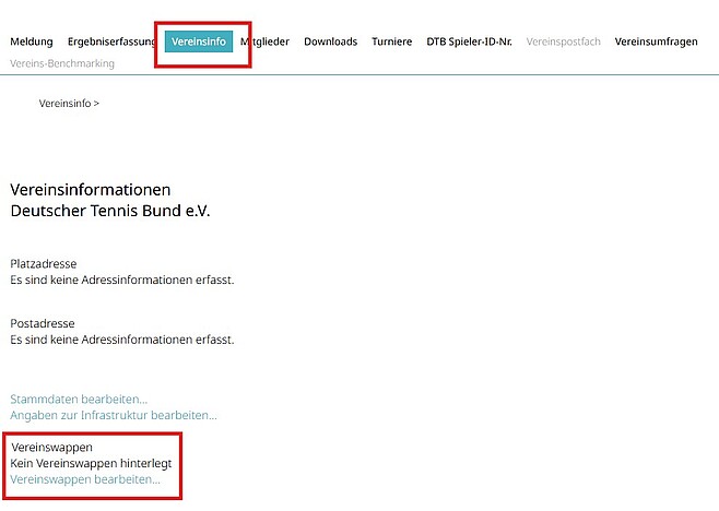 Wechsel zum Reiter „Vereinsinfo“