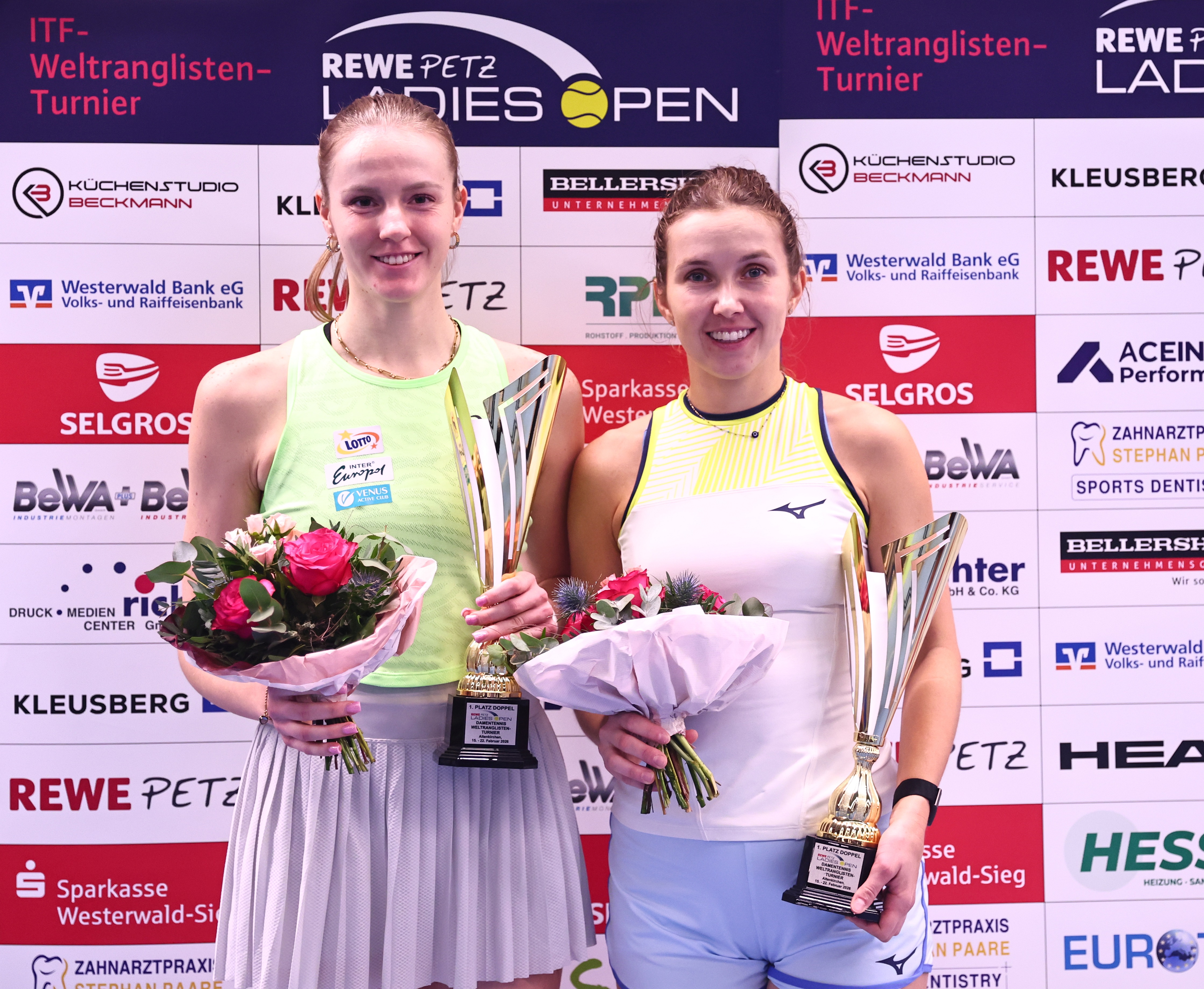 Die in der Doppel-Setzliste ganz oben Geführten waren auch auf dem Court die Nummer eins. Justina Mikulskyte und Martyna Kubka haben das Endspiel gegen Nastja Schunk und Tessa Brockmann in zwei Sätzen deutlich mit 6:1 und 6:2 für sich entschieden. „Wir wollten das Spiel natürlich knapper gestalten, sind aber trotzdem mit unserer Leistung zufrieden“, sagte Brockmann bei der Siegerehrung. Zum ersten Mal bildeten sie und die gebürtige Mainzerin Schunk bei einem Turnier ein Doppel. „Es hat Spaß gemacht“, resümierte Brockmann. Schunk ist in Altenkirchen im Gegensatz zur bereits ein bekanntes Gesicht. Seit dem Jahr 2020 ist die ehemalige Wimbledon-Finalistin der Juniorinnen-Konkurrenz immer dabei auf der Glockenspitze. „Altenkirchen hat in jedem Jahr einen festen Platz im Kalender“, verdeutlichte die 22-Jährige, dass sie sich beim Turnier im Westerwald pudelwohl fühlt.