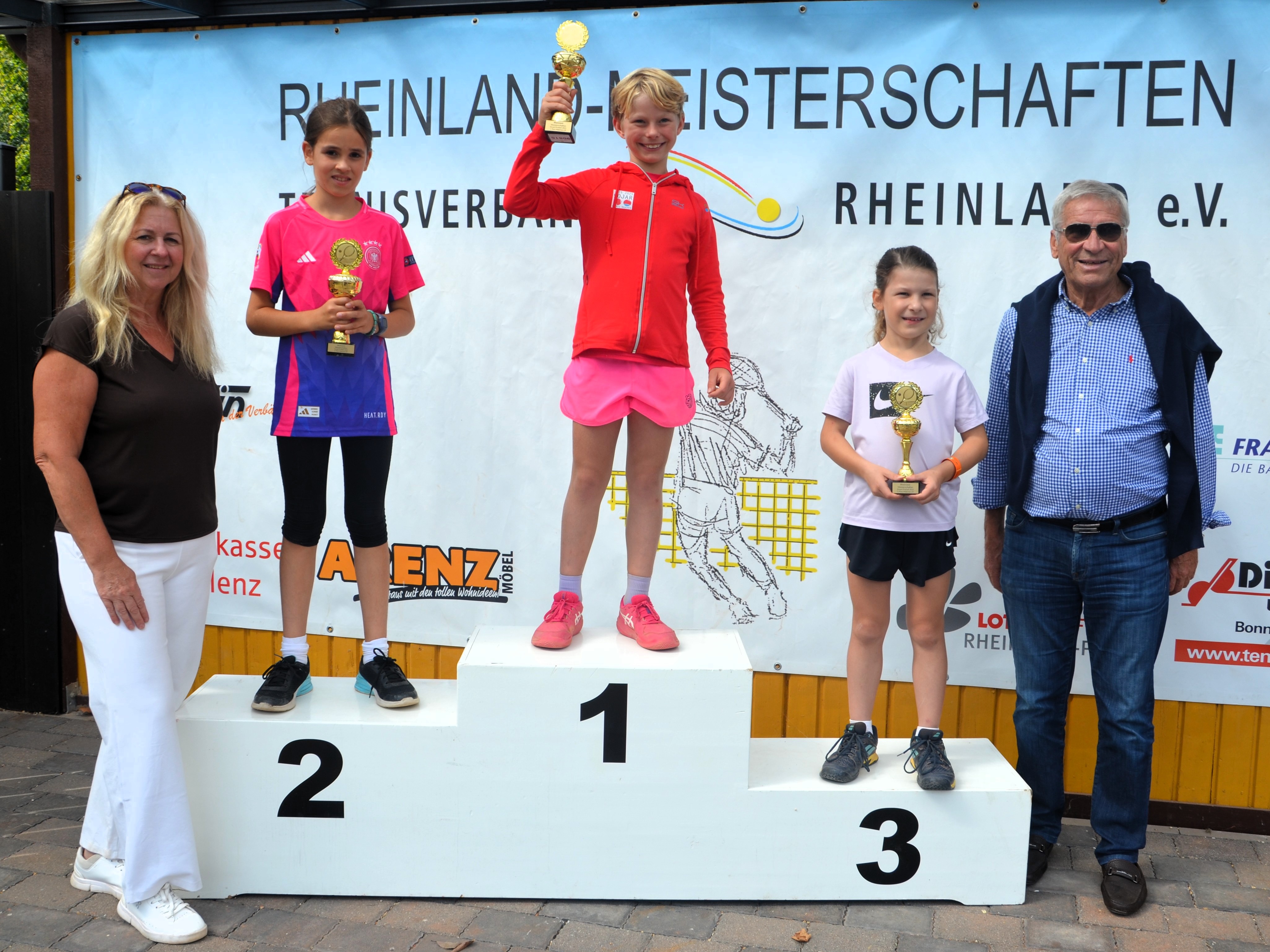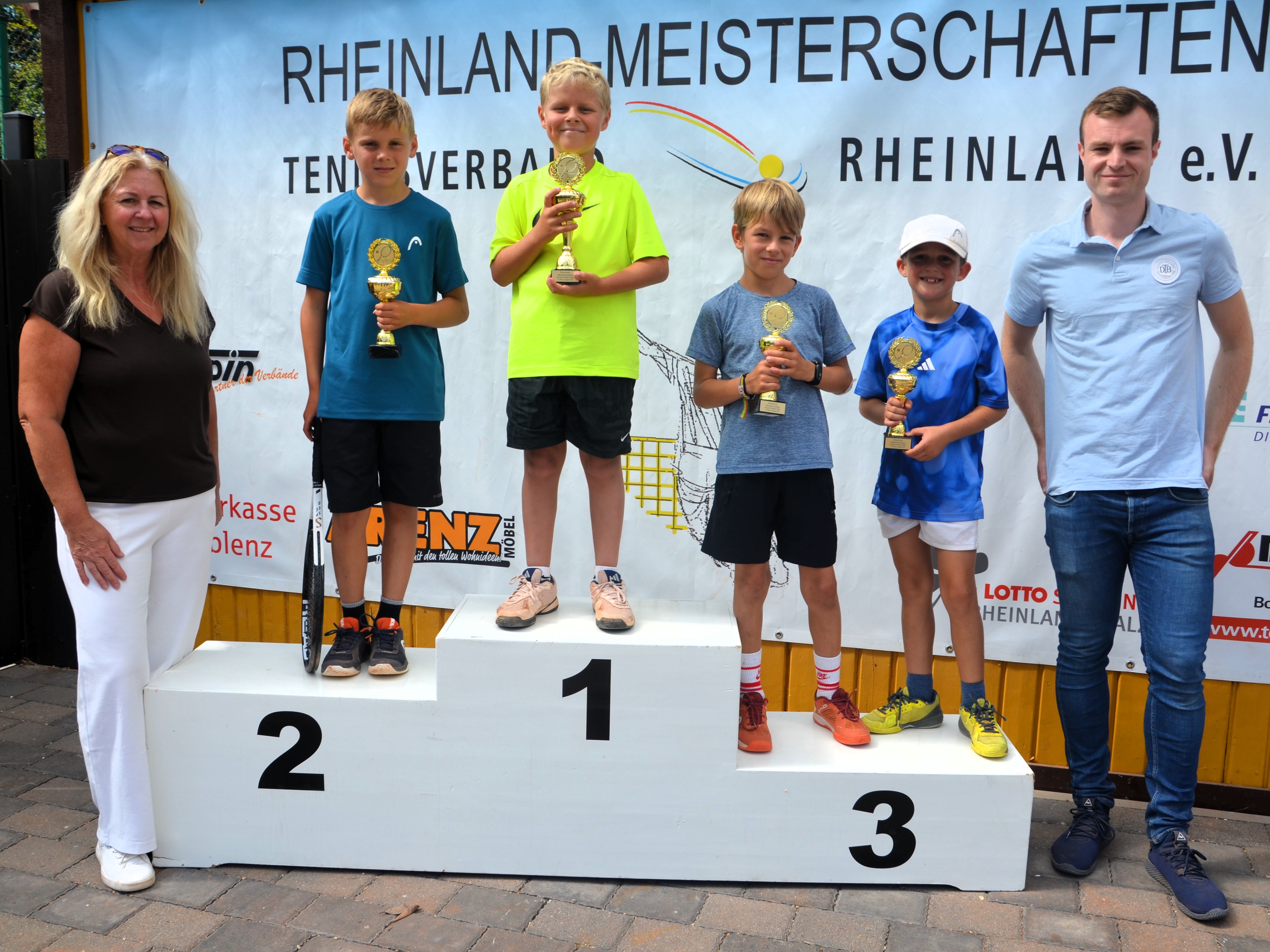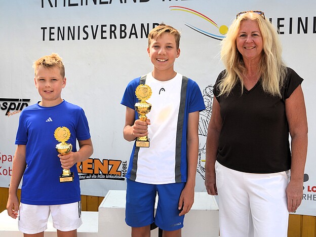 In der höchsten Altersklasse der Mädchen (U18/16) standen sich die beiden Topgesetzten Paula Mina Sand (HTC Bad Neuenahr) und Polina Herasymenko (TC Trier) gegenüber. Zweitgenannte, die schon 2024 triumphiert hatte und schon damals auf dem Weg zum Titel gegen Sand gewann, behielt abermals die Oberhand. Herasymenko setzte sich in einem qualitativ guten Match mit 6:4 und 6:4 durch. Bei den Jungen U16 kam es derweil zu einem mit Spannung erwarteten Finale der beiden topgesetzten Spieler. Titelverteidiger Clemens Müller (TC BW Bad Ems) wurde vom jüngeren Johannes Scherer (Osburger TC), der im Vorjahr noch im Finale der U14 stand, herausgefordert. Scherer erwischte am Final-Sonntag einen echten Sahnetag und krönte sich mit einem klaren 6:2 und 6:2-Erfolg zum neuen Rheinlandmeister. In den U14-Klassen blieben größere Überraschungen ebenfalls aus. Leif Leukel (TC BW Bad Ems) gewann in einem erfreulich großen Feld bei den Jungen U14 mit 6:3 und 6:1 gegen Vereinskamerad Raphael Menniken, während sich bei den Mädchen Anna Gorel (TC Nittel) in einem äußerst spannenden Finale den Titel gegen Lina Heimer (TC BW Bad Ems) mit 7:5, 3:6 und 10:5 schnappte. Gleichermaßen umkämpft ging es im Finale der U12 Jungen zu. Hier siegte Philipp Püchner (TV Guckheim) erst im Champions-Tiebreak und insgesamt mit 6:2, 5:7 und 10:6 gegen den tapfer kämpfenden Überraschungsfinalisten Theo Bröder (TC Diez). Bei den Mädchen U12 wurde Lokalmatadorin Marie Wagenleitner (VfR Koblenz-Karthause) ihrer Favoritenrolle gerecht. Gänzlich ohne Satzverlust ließ sie im Finale auch Victoria Kuncheva (TV Guckheim) beim 6:3 und 6:0 nur wenig Chancen. In den jüngsten Altersklassen gewannen Otis Wege (TC BW Bad Ems) im Finale der Jungen U10 gegen Maximilian Faßbender (VfR Koblenz-Karthause), Elina Zhu (TC Güls) bei den Mädchen U10 vor Sophia Oster (Spfr. Höhr.Grenzhausen) sowie Matteo Müller (Andernacher TC, U9 männlich) und Amelie Fischer (SV Forst, U9 weiblich).