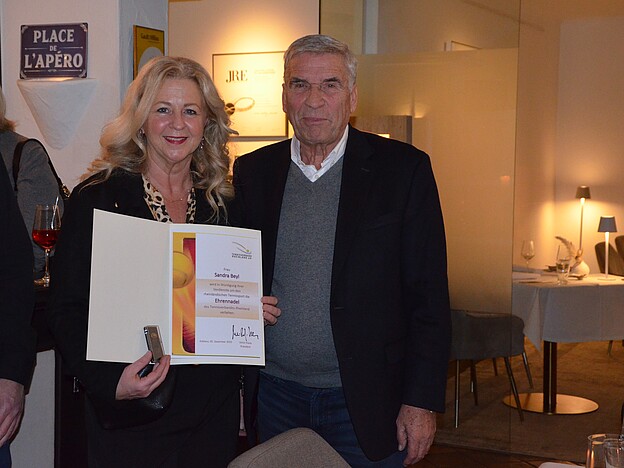 Sandra Beyl und Christian Klapthor erhalten die Bronzene Ehrennadel des Tennisverbandes Rheinland