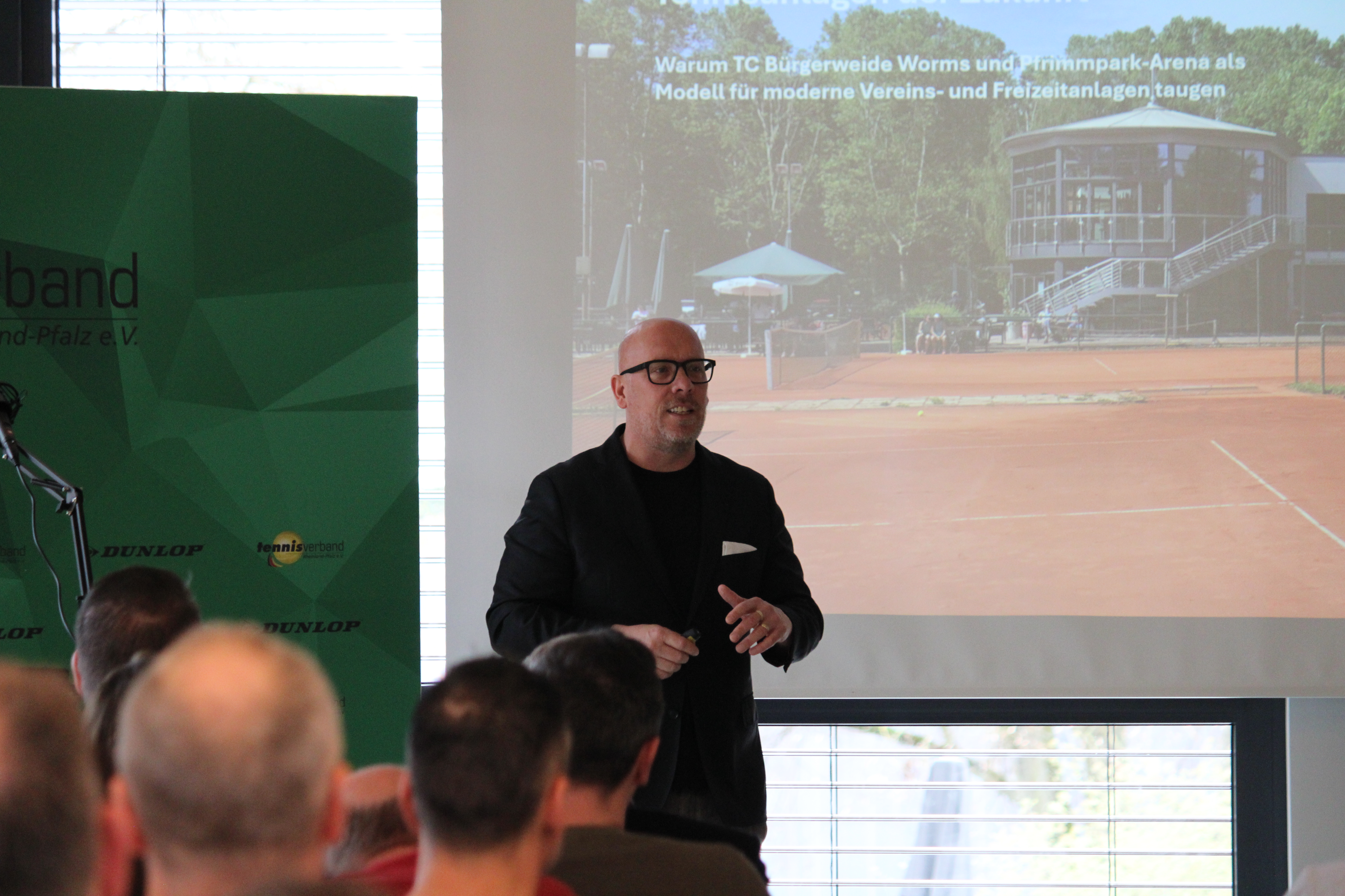 Im Anschluss wurden Best-Practice-Beispiele aus Vereinen in Rheinland-Pfalz vorgestellt. Dabei berichteten Vereinsvertreter über praktische Erfahrungen aus der Vereinsarbeit und über erfolgreiche Projekte vor Ort. Themen waren unter anderem ein Hallenumbau durch ehrenamtliches Engagement beim TC Rot-Weiß Worms, die Entwicklung einer Multisportanlage in der Pfrimmparkarena sowie Erfahrungen mit Kunstrasenplätzen. Die Referenten Lukas Gaedt und Julian Djabarian (TC Rot-Weiß Worms), Sascha Kaiser (TC Bürgerweide Worms/Pfrimmparkarena) sowie Heiko Bieser (TC Ober-Hilbersheim) konnten durch ihre praxisnahen Berichte anschaulich zeigen, wie Projekte im Vereinsalltag umgesetzt werden können und den Teilnehmern hilfreiche Impulse für eigene Vorhaben mitgeben.
