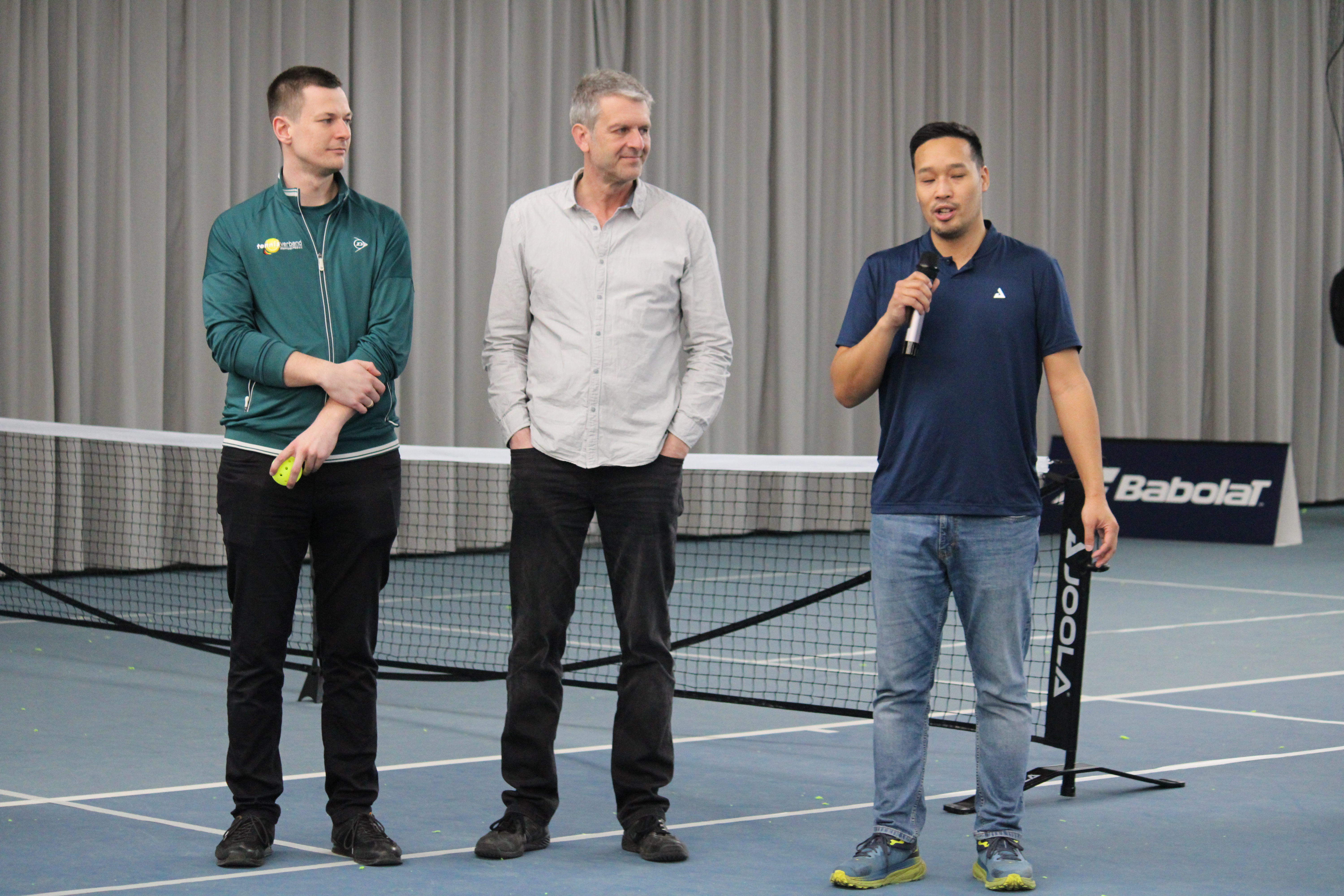 Im Vormittagsteil der Veranstaltung präsentierten mehrere Unternehmen ihre Lösungen und Produkte für moderne Tennisanlagen. Vertreter der Firmen AV Syntec, HarTru, DUOL und WELUMA stellten innovative Konzepte für Tennisplätze vor: AV Syntec und HarTru zeigten Alternativen zum klassischen Tennissand mit ihren Belägen Rebound Ace / ConiRAce und Top Clay / Top Sand.