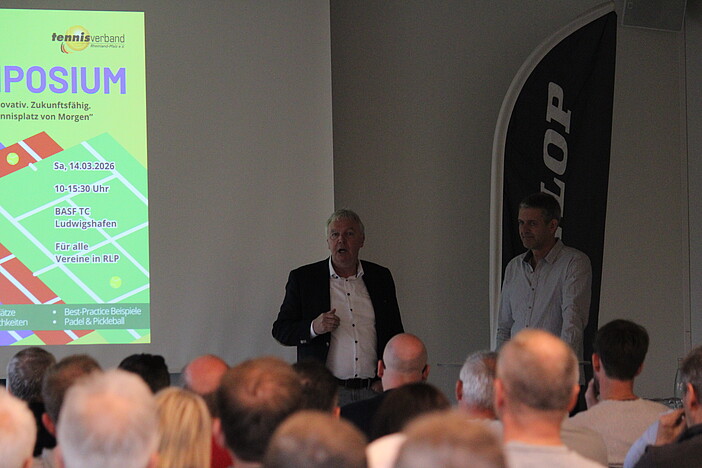 Am 14. März organisierte der Tennisverband Rheinland-Pfalz das Symposium „Nachhaltig. Innovativ. Zukunftsfähig – Wege für den Tennisplatz von morgen“. Rund 120 Teilnehmerinnen und Teilnehmer aus den Tennisvereinen und Verbänden in Rheinland-Pfalz nutzten die Gelegenheit, sich über aktuelle Entwicklungen im Tennisanlagenbau, neue Belagssysteme sowie zusätzliche Trendsportangebote für Vereine zu informieren.