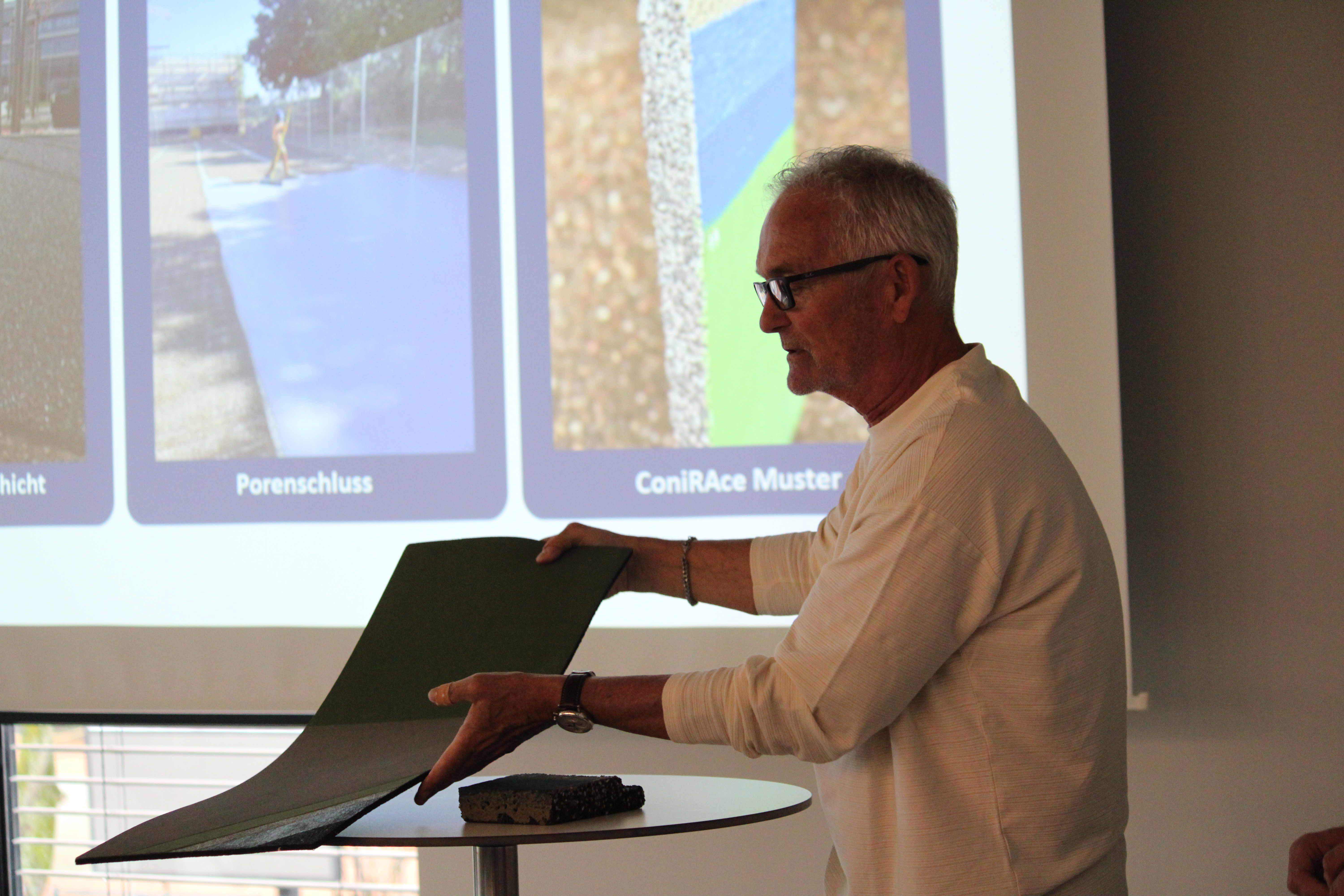 Im Vormittagsteil der Veranstaltung präsentierten mehrere Unternehmen ihre Lösungen und Produkte für moderne Tennisanlagen. Vertreter der Firmen AV Syntec, HarTru, DUOL und WELUMA stellten innovative Konzepte für Tennisplätze vor: AV Syntec und HarTru zeigten Alternativen zum klassischen Tennissand mit ihren Belägen Rebound Ace / ConiRAce und Top Clay / Top Sand.